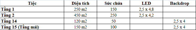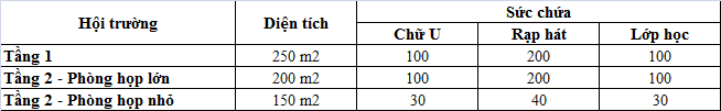 - Số lượng: 3 phòng (tối đa 50 khách)