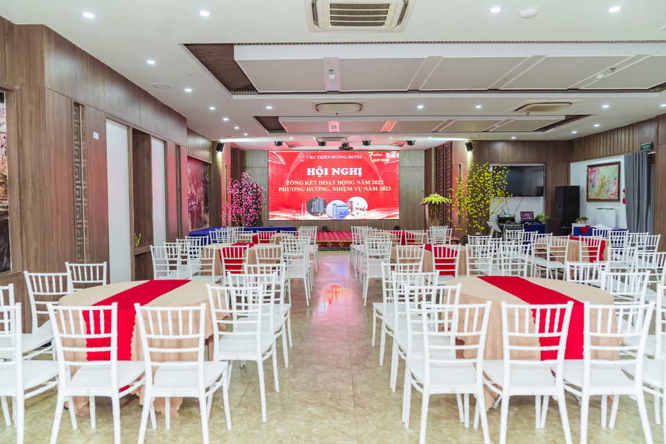 Khách sạn CKC Thiên Đường có 3 không gian tổ chức sự kiện được bài trí sang trọng, trang nhã, rộng rãi với tổng sức chứa lên tới 600 khách.